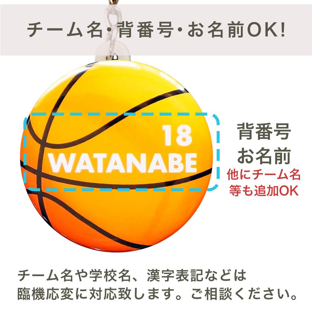 ◇ バスケットボールデザインの中に「背番号」や「お名前」を入れられるオリジナルキーホルダーです。