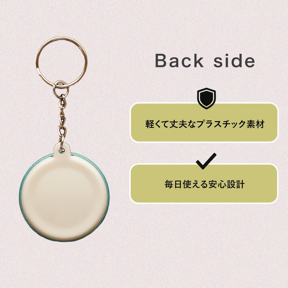 また、缶バッジ素材だからこそ 発色が鮮やかでツヤ感があり、高級感のある仕上がり。アクリルキーホルダーとは一味違った存在感を楽しめます。