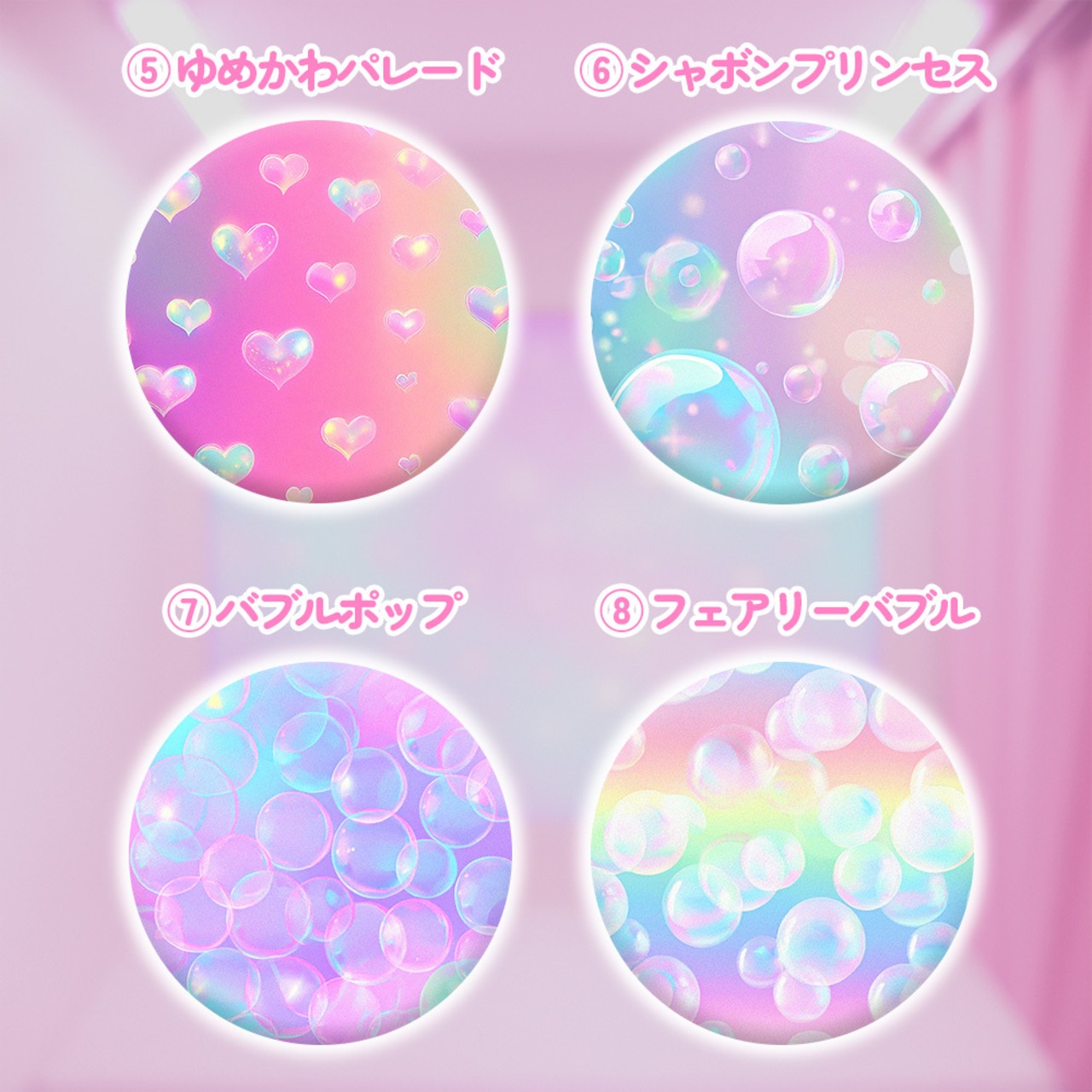 ハート、リボン、レース、シャボン玉、チェック柄…。