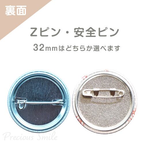・裏面:安全ピンタイプ(国内製造、32mmはZピンも選択可)