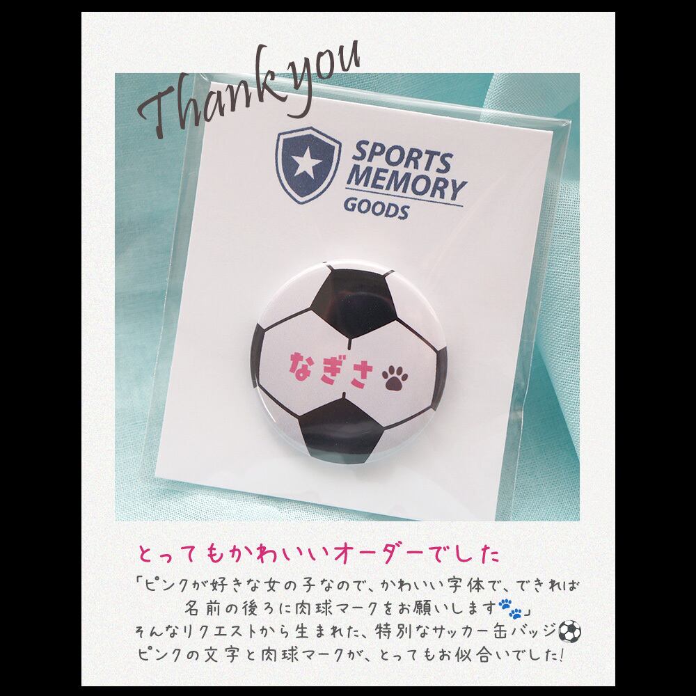 サッカースクールや部活の記念品・卒団プレゼントとしてもオススメなスポーツ缶バッジです。