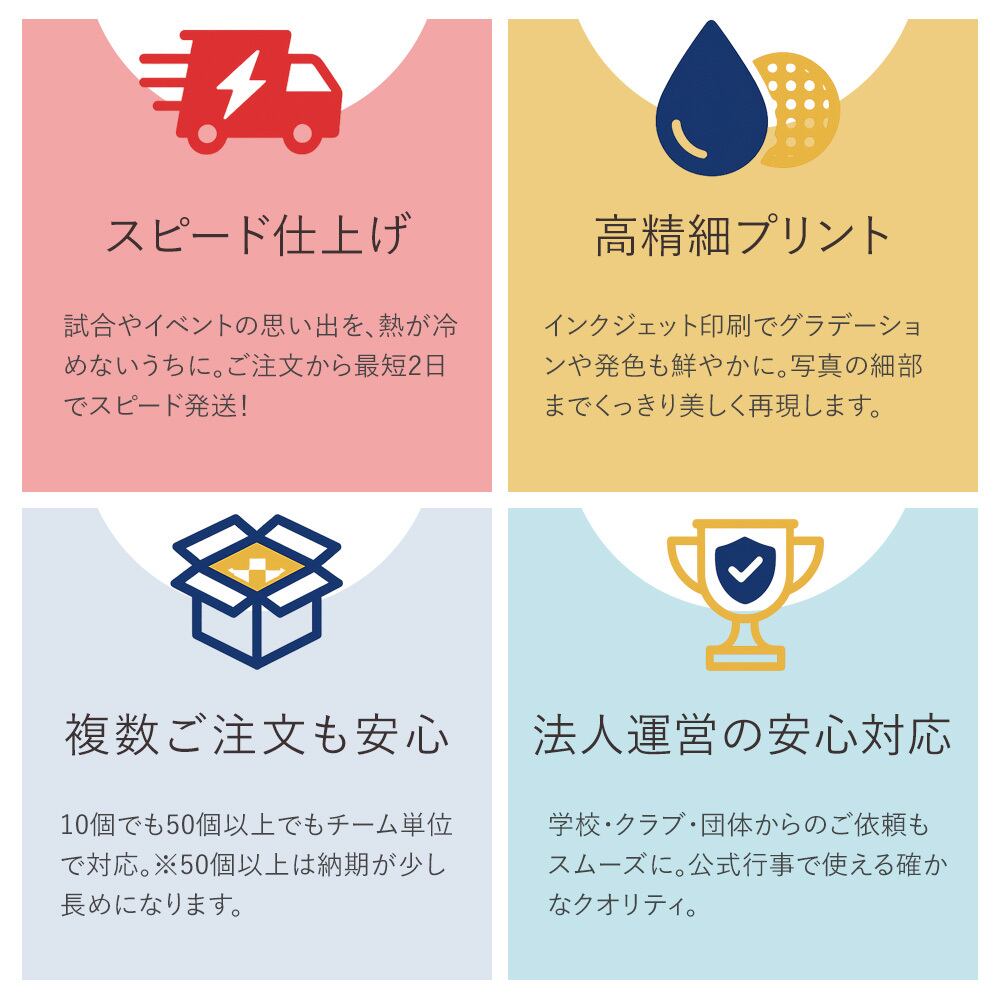 チーム全員分をつくって身に着けることで結束力があがること間違いなし!